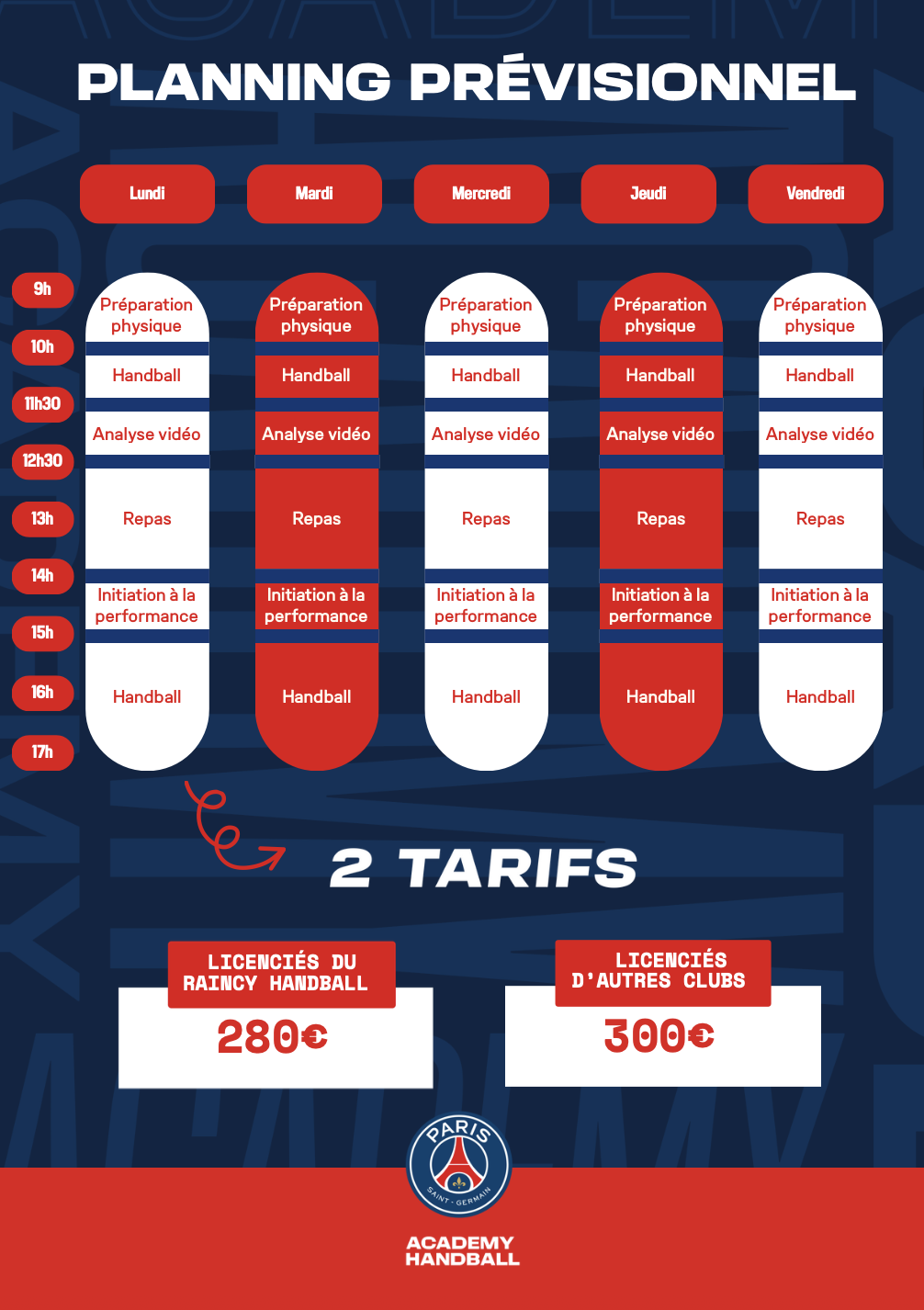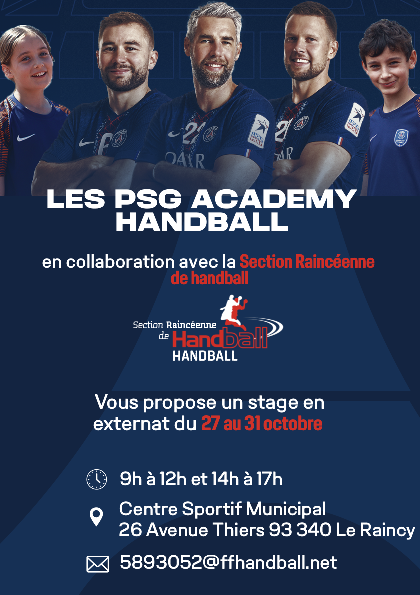 La Section Raincéenne de Handball a le plaisir de s’associer au PSG Handball pour organiser un stage d’une semaine placé sous le signe de la performance, de la passion et du partage.